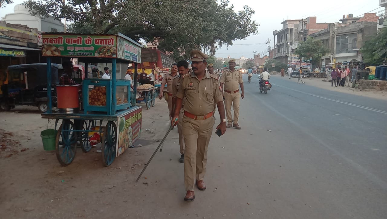 त्यौहार पर शांति सुरक्षा के दृष्टिगत कोतवाल ने सड़कों पर किया पैदल गस्त