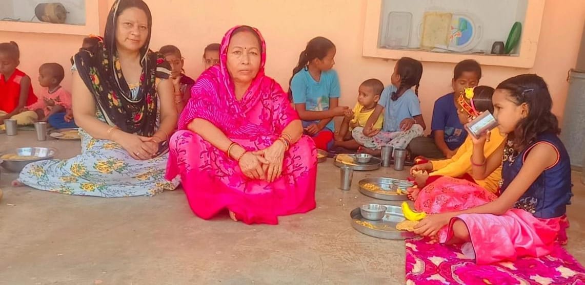 नवरात्र सप्तमी पर पूजन कर कराया गया कन्या भोज