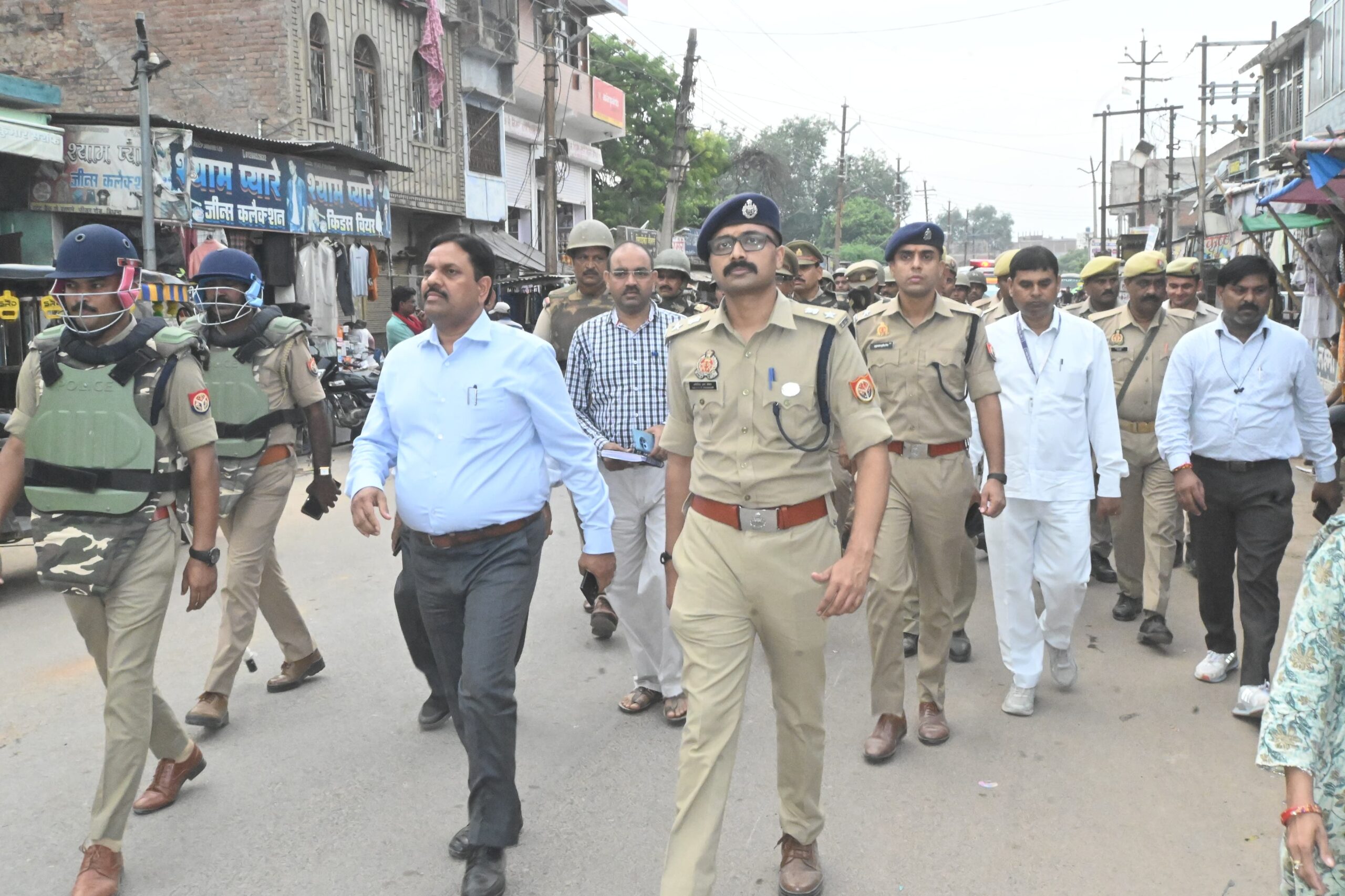 त्योहारों पर शांति सुरक्षा की दृष्टिगत डीएम एसपी ने सड़कों पर किया पैदल गस्त
