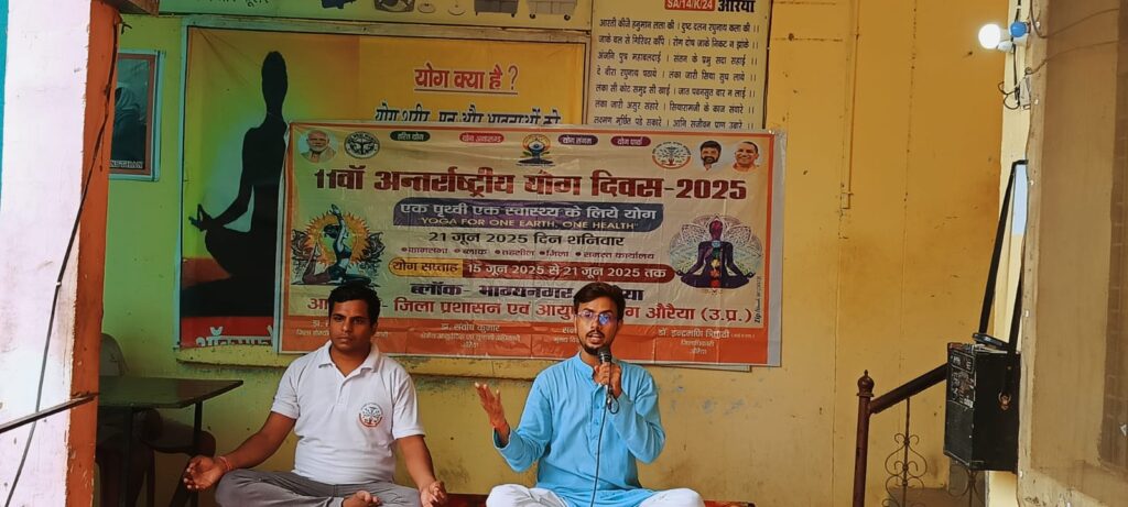 औरैया 19 जून 2025– 15 से 21 जून 2025 तक मनाए जाने वाले योग सप्ताह के छठवें दिन 11वां अंतर्राष्ट्रीय योग दिवस पर आयुष विभाग द्वारा आनेपुर वृद्धाश्रम में बुजुर्गों और महिलाओं को योग से निरोग रहने की जानकारी दी। योग प्रशिक्षक शशिराज सेठ व उत्कर्ष सिंह ने बुजुर्गों और महिलाओं को योग करवाया और उन्हें योग क्रियाएं भी सिखाईं। मास्टर ट्रेनर शशिराज सेठ ने बताया कि बड़े बुजुर्ग एवं महिलाएं निरोग और तनाव मुक्त जीवन यापन कर सकें। इसके लिए आयुष विभाग लोगों को आयुर्वेद व योग से लाभांवित करने के लिए योजनाओं के तहत कार्य कर रहा है। क्षेत्रीय आयुर्वेदिक एवं यूनानी अधिकारी डॉ० संतोष कुमार ने कहा कि अंतर्राष्ट्रीय योग दिवस से पूर्व जिले के हर क्षेत्र में योग शिविर लगाने की योजना है उन्होंने बताया कि जिले में आयुष पद्धति से उपचार करवाने और तनाव मुक्त रहने के लिए लोग आयुर्वेद व योग को तरजीह दे रहे है।