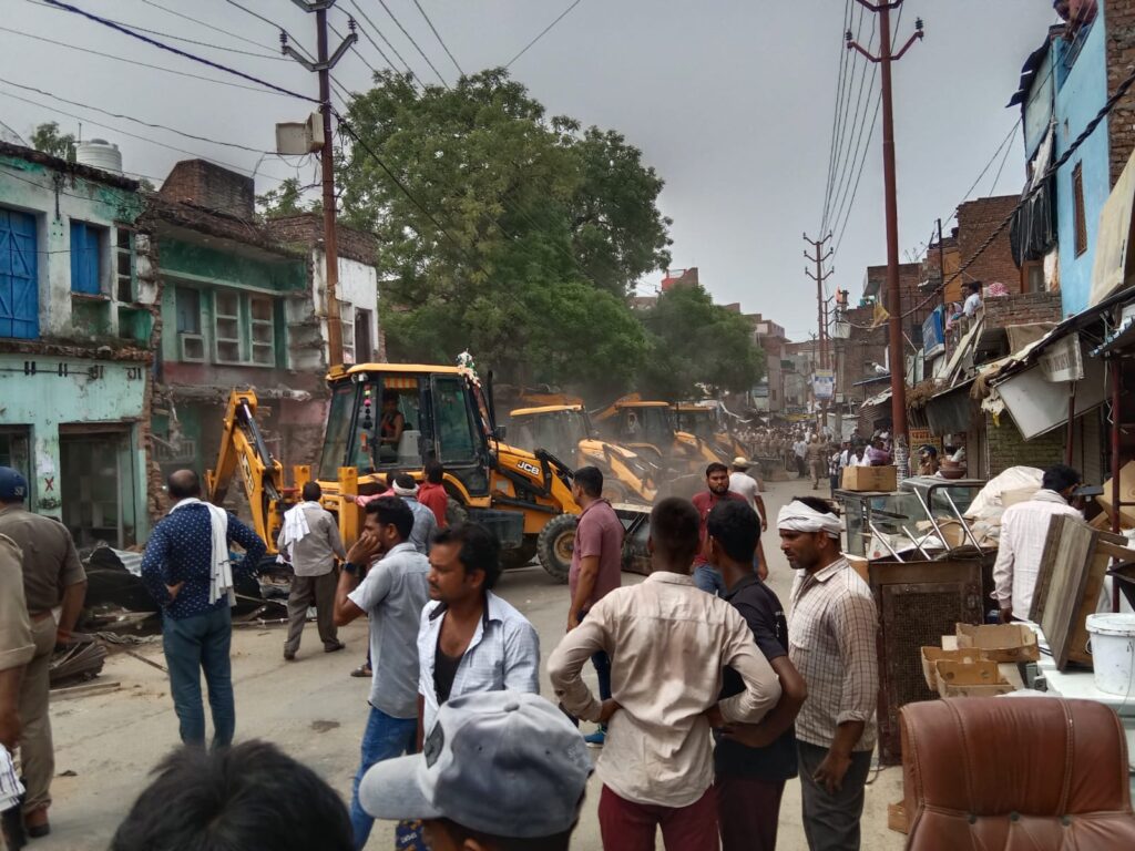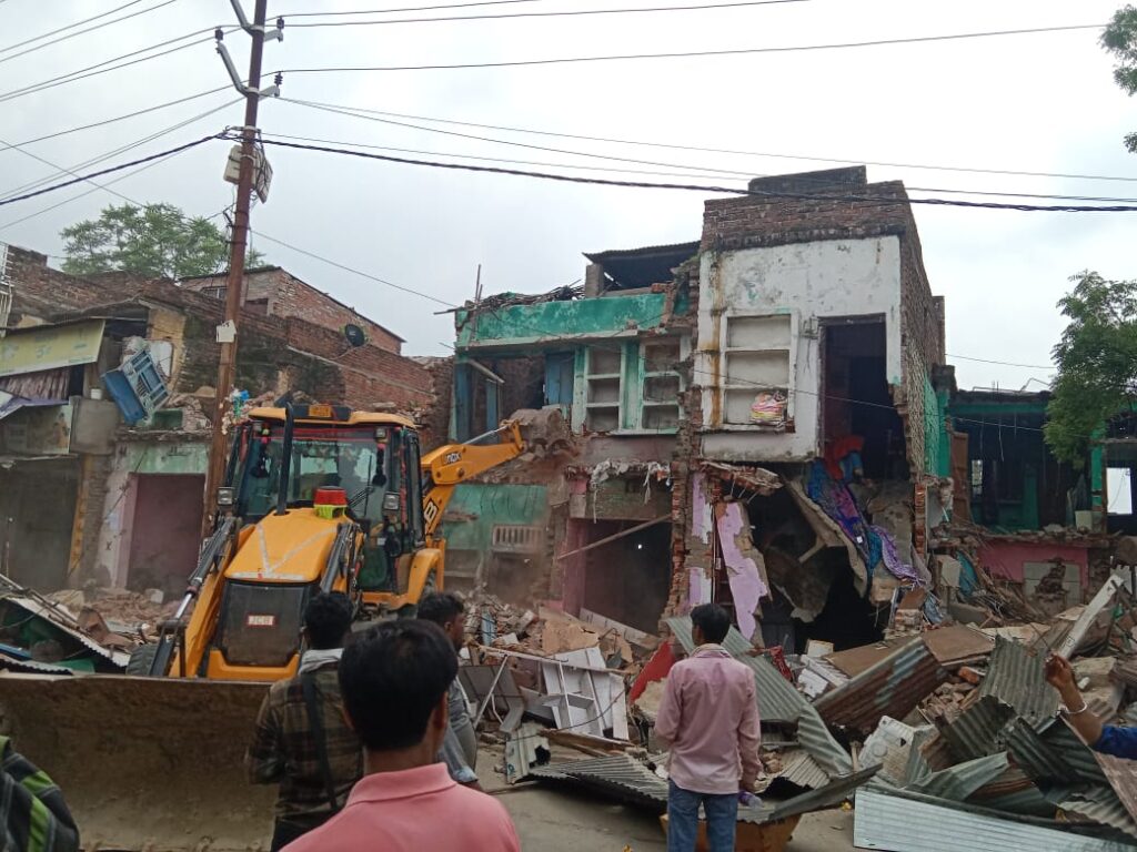 औरैया के दिवियापुर मे बाबा का बिलडोजर गरज रहा है जहां पर सिंचाई विभाग अपनी ज़मीन को खाली कराने में जुटा हुआ है।7 जेसीबी मशीनों के साथ वही लोग अपने मकानों से सामान निकालने की कोशिश कर रहे पहले ही सिचाई विभाग द्वारा नोटिस दिए जा चुके थे लेकिन लोगों ने नही सोचा था कि प्रशासन द्वारा खाली कराए जा रहे है।170 साल पुराना नहर का पुलिस जिसको नवीनीकरण के लिए नहर विभाग द्वारा अपनी जमीन खाली कराई जायेगी औरैया कन्नौज मार्ग पर दिबियापुर में नहर पर लगता था भीषण जाम वही नहर पुल बना 170 साल पुराना पुल होने के कारण इसको बनाने के लिए स्वीकृति कर दिया गया था। जहां नए पुल को लेकर कराई जा रही सिंचाई विभाग के द्वारा खाली